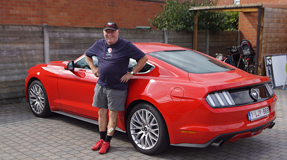 Je hebt the woman in red maar je hebt ook de man met de rode schoentjes…wie zou dat kunnen zijn ? Eigenlijk niet moeilijk te raden, want er is maar één persoon dit met zijn rode mustang de koer komt opgereden...