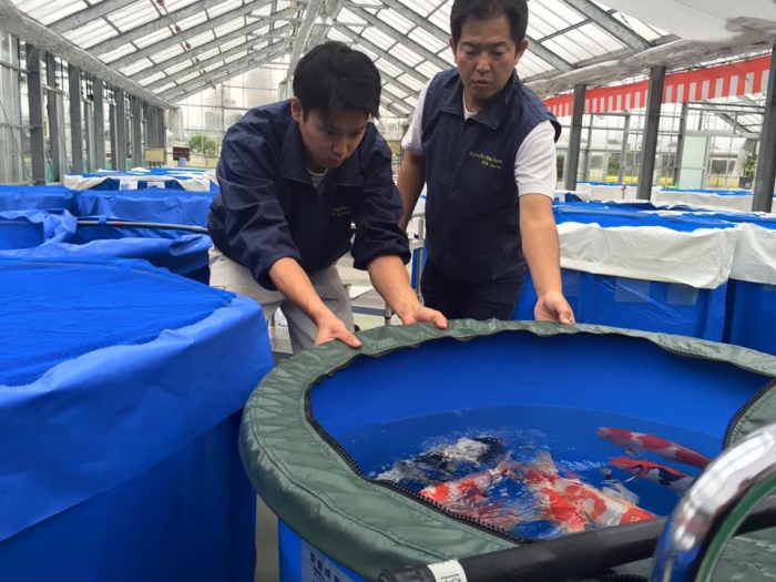 Ondertussen is een nieuwe veiling bezig bij Narita, zoals je op de bijgevoegde foto's kan zien. Ik heb opdracht gegeven om te zien of er iets interessant tussen zit bij deze koi die gewoonlijk tot de betere koi behoren. De prijzen zijn dan ook skyhigh, en dat zul je er bij moeten nemen wil je de koi aankopen die tot grote dingen in staat zijn.