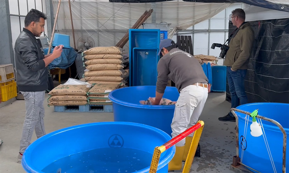 Wat betreft hun belangrijkste kweeklijn, de shiro uitsuri, daar wordt vooral veel pure White gevoerd om het shiroij wit te houden. Dit voer gebruiken ze ook voor de show om de koi klaar te maken. Het was interessant om te horen en zo zie je maar dat ieder zijn eigen weg bewandeld. Belangrijk is natuurlijk ook dat iedere variëteit zijn eigen voedselsystemen heeft.
